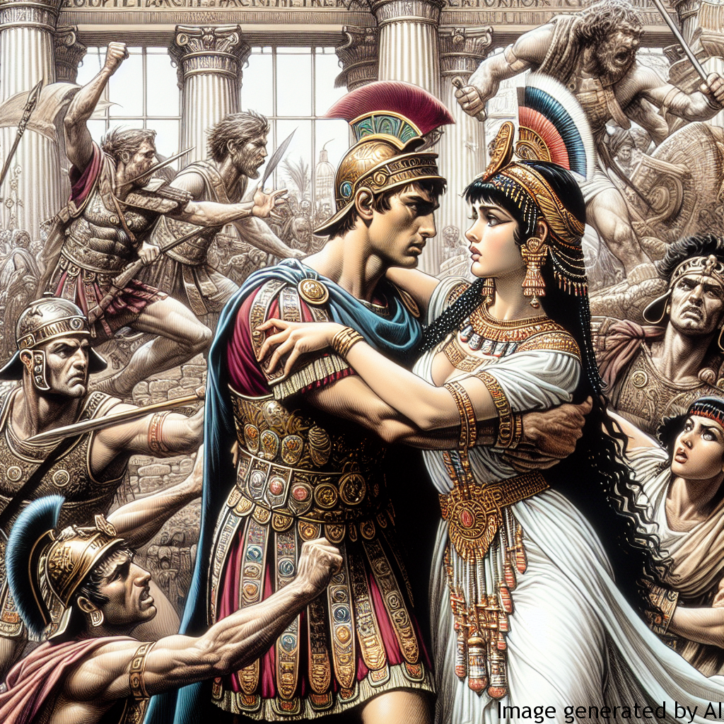 Mark Antony and Cleopatra are one of the most famous couples in history. This relationship was not just a personal affair, it had significant political implications. Antony, a Roman leader, and Cleopatra, the queen of Egypt, were entangled in a love affair that would eventually lead to Antony’s downfall and conflict with Rome.